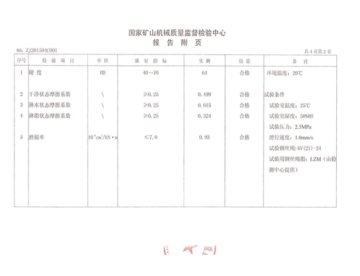 3、机械强度高,不含损伤钢丝绳的物质,硬度适中,具有很好的绳槽可车削性。